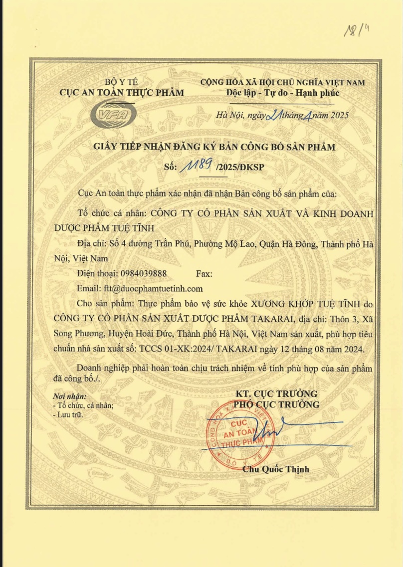 Số đăng ký Bộ Y tế: 1189/2025/ĐKSP